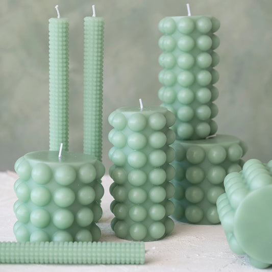 Unscented Hobnail Pillar Candle, Mint Color (Approximate Burn Time 50 Hours)