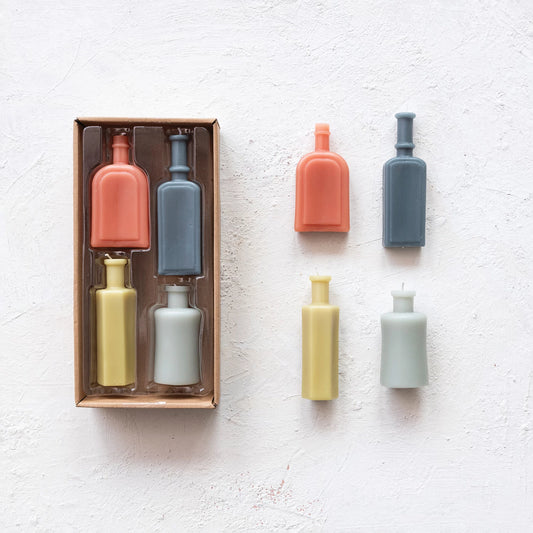 Unscented Vintage Bottle Shaped Candles, Multi Color, Set of 4