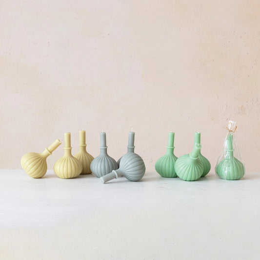 Unscented Taper in Pleated Vase Shaped Candle, Mint Color