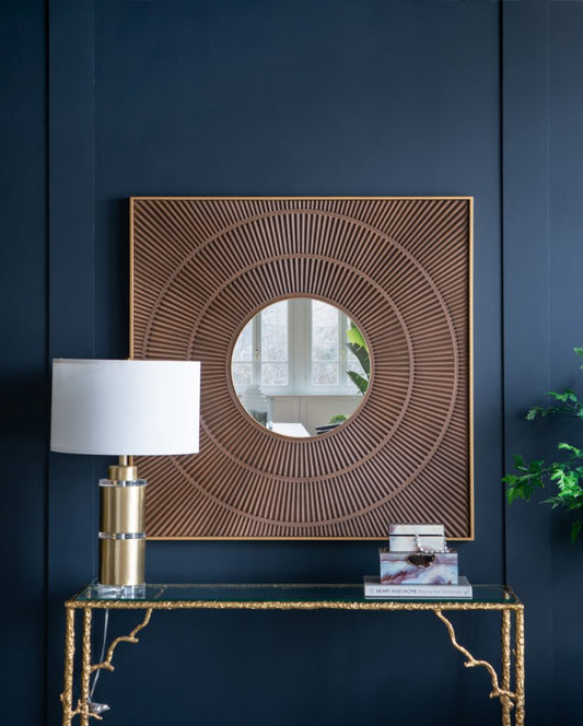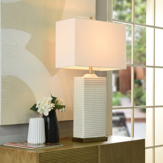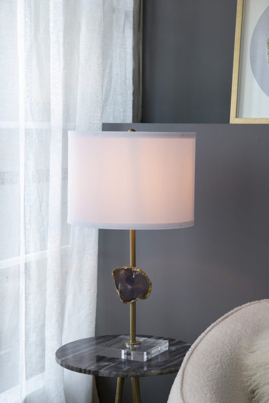 Gold Table Lamp with Agate Slice and White Drum Shade