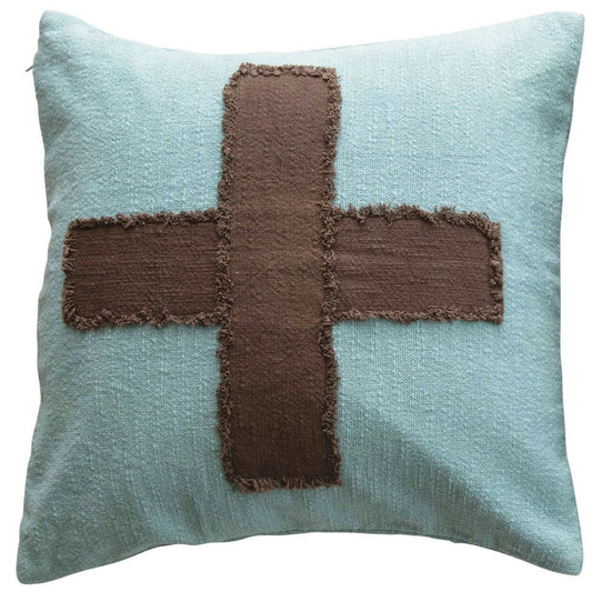 20" Cotton Slub Pillow with Swiss Cross, 2 Colors