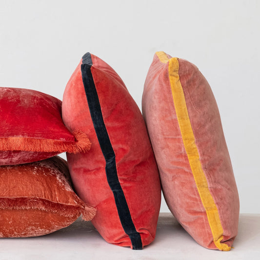 20" Square Cotton Velvet Pillow w/ Contrasting Gusset
