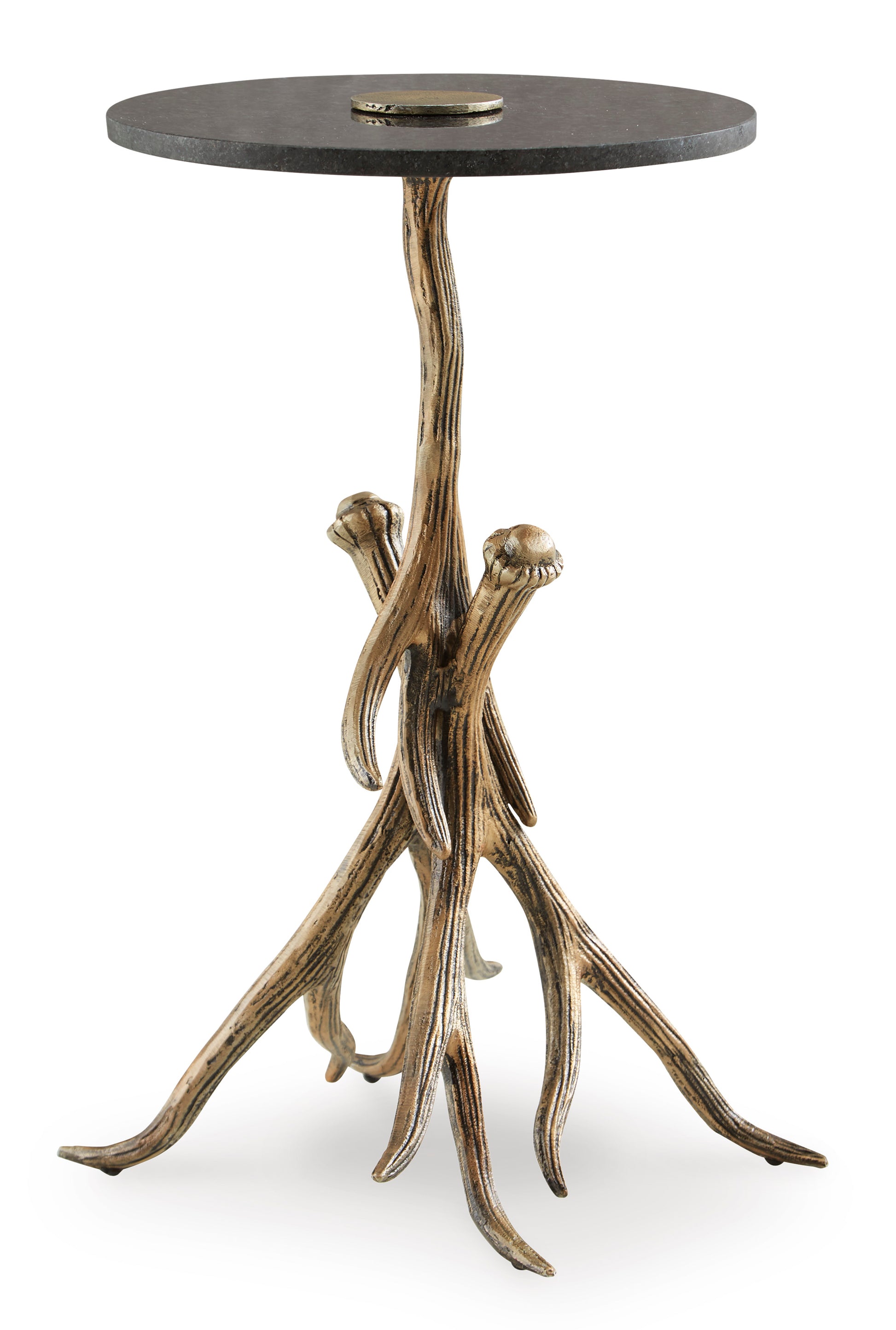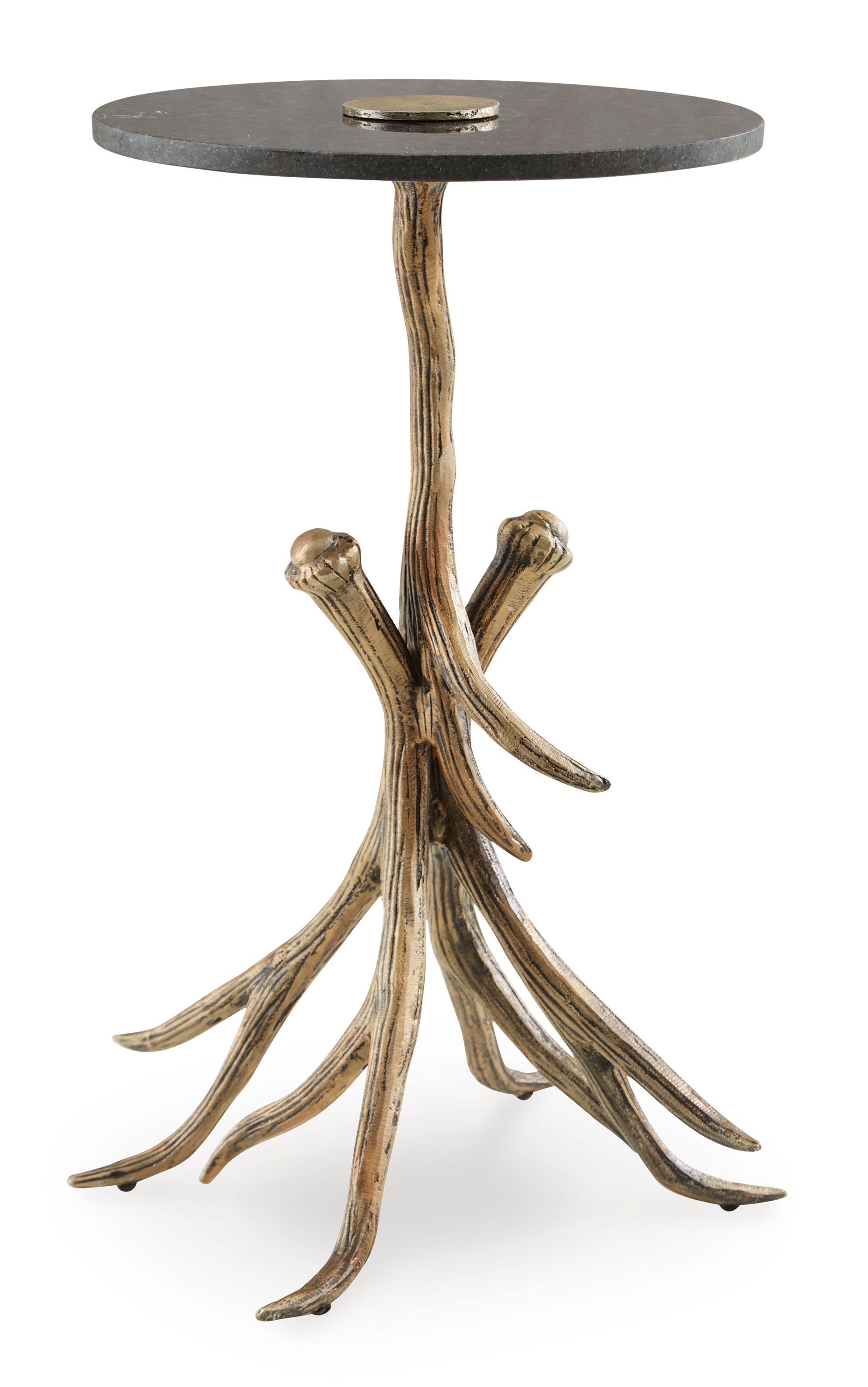 Introduce rustic yet contemporary charm to your home with the Larkin Accent Table. The nature-inspired design, adorned with faux antlers and a black marble top, adds a touch of elegance to any room. Crafted from cast aluminum with an antiqued gold tone finish, this statement piece exudes unique character and timeless sophistication.