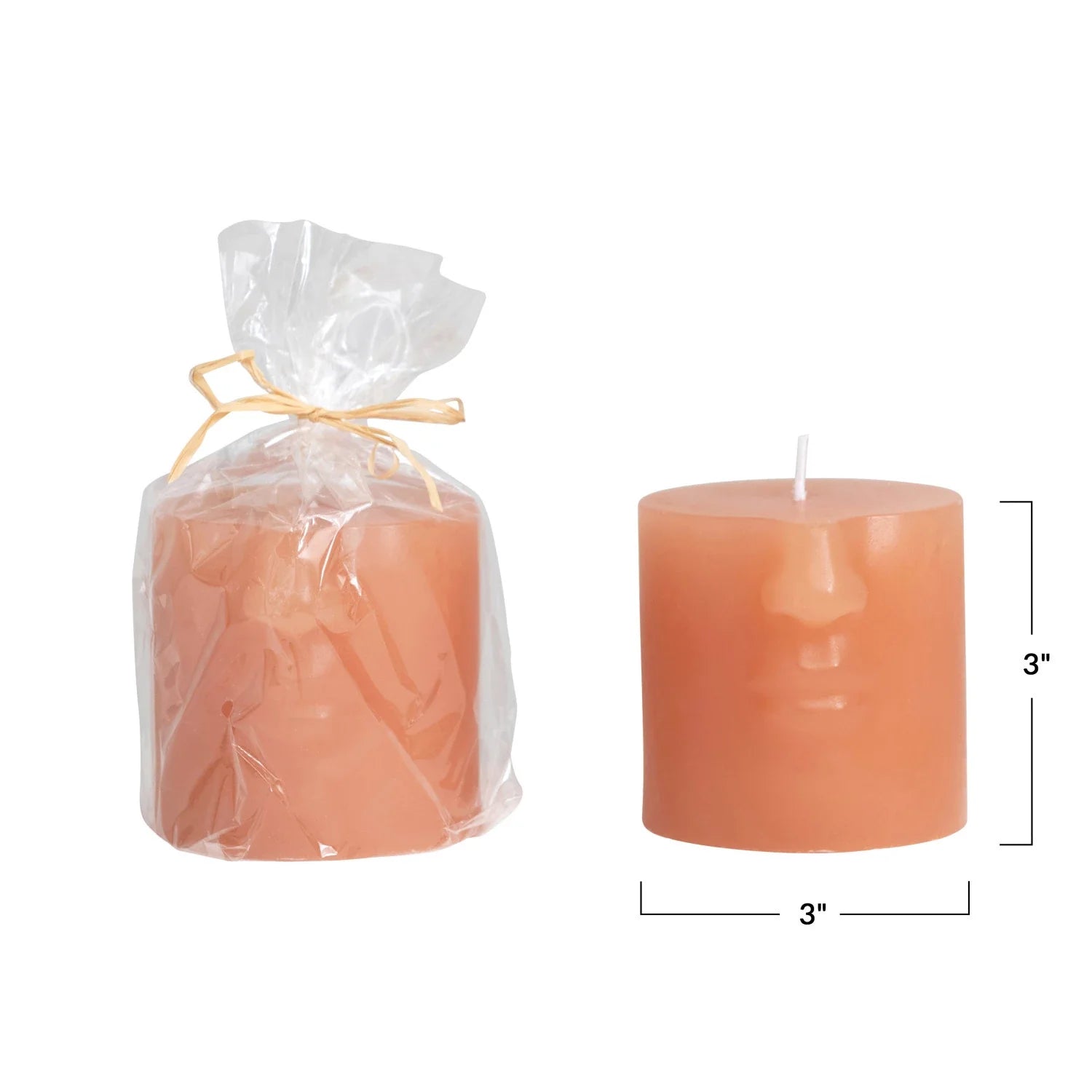3" Round x 3"H Unscented Face Pillar Candle, Nude Color (Est. Burn Time 30 Hours)